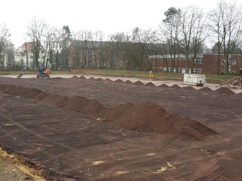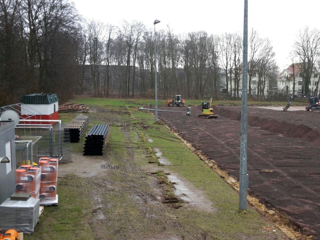 Nach 60 Jahren "Grandplatz-Fußball" auf dem Sportplatz Blomkamp wurde heute der Baubeginn des Kunstrasenplatzes für den 22. Februar 2016 vom Fachamt Bezirklicher Sportstättenbau bekanntgegeben.