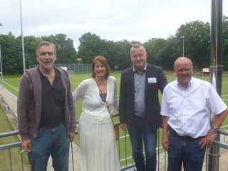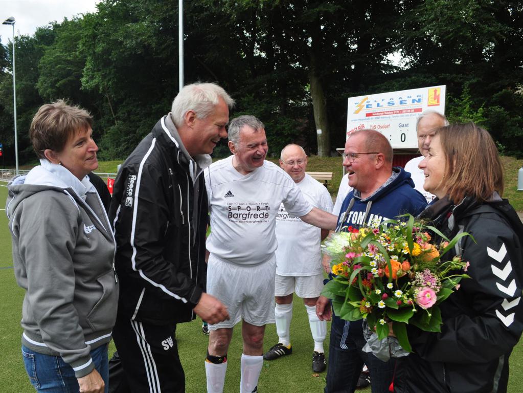 Neben dem Kunstrasen weihte der TuS Osdorf ebenfalls die vom Verein finanzierte neue Flutlichtanlage ein. Abschließend überreichte Gerhard Jarms im Namen des Bürger- und Heimatvereins Osdorf eine Spende über 500€.