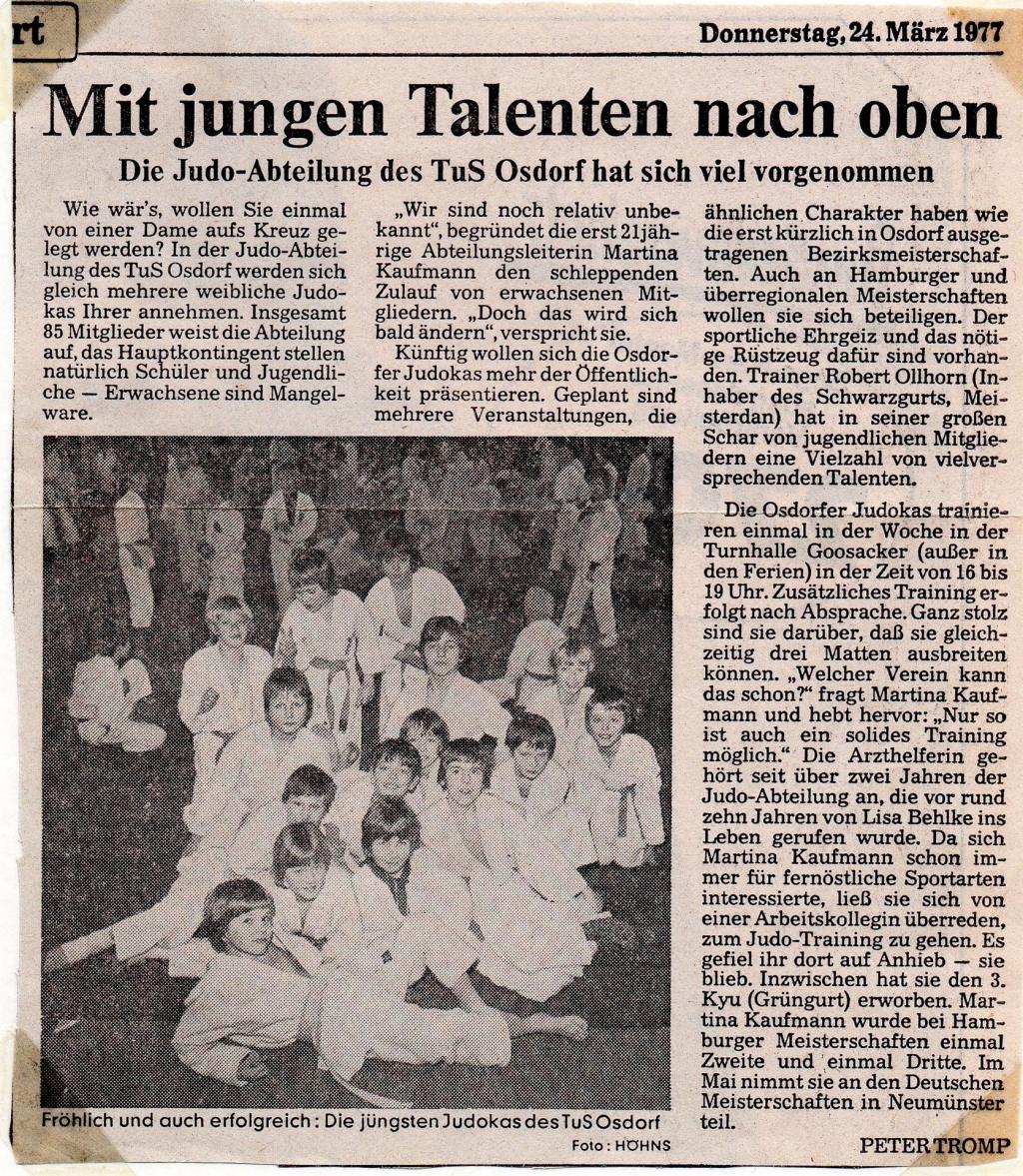 1977 nahm die damalige Judoabteilungsleiterin Martina Kaufmann an den deutschen Meisterschaften teil und wurde Hamburger Vizemeisterin. Martina Brich war viele Jahre bei einem Internisten in Alt-Osdorf als Arzthelferin beruflich tätig und wohnt heute noch immer in der Siedlung Osdorf-Mitte. In ihrer Freizeit ist sie heute in erster Linie als Hobbyfotografin aktiv.