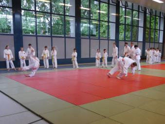 Wichtiger Bestandteil ist außerdem das Erlernen des Fallens. Es soll vor Verletzungen und schmerzhaften Landungen beim Training, aber auch im täglichen Leben schützen.