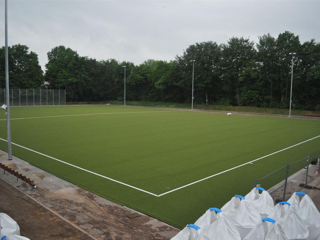 Der Sportplatzumbau läuft planmäßig. Der Kunstrasen ist komplett verlegt. Ein Teil der der Spielfeldmarkierungen wurden schon eingearbeitet. Mehr Fotos gibt es hier.