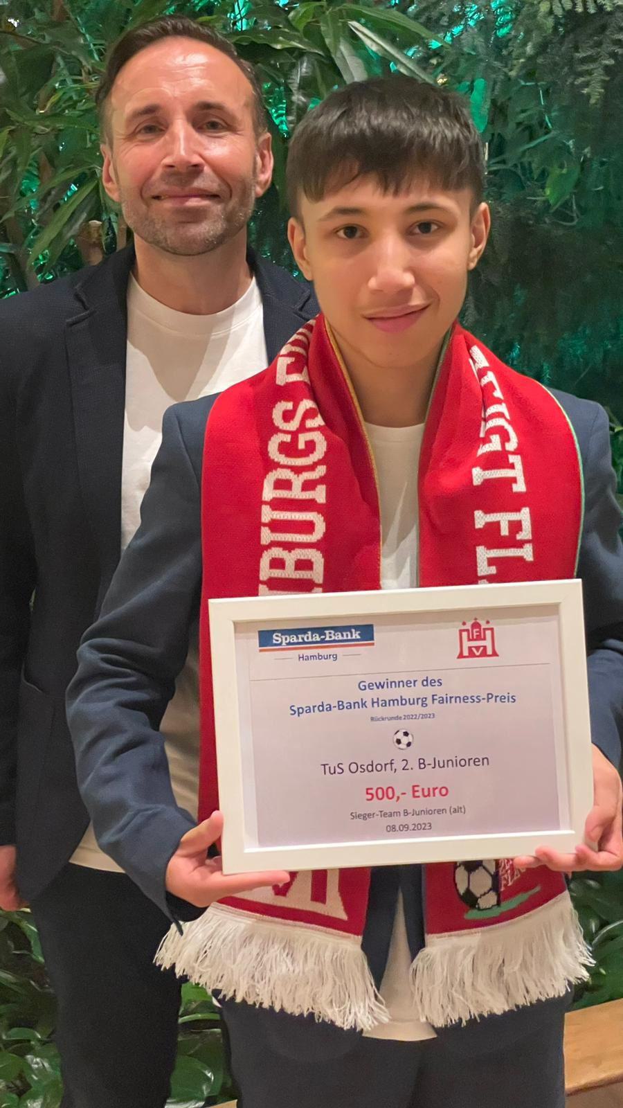 TuS Osdorf 2. B-Junioren der Spielzeit 2022/2023 gewinnt den SPARDA Fairness-Preis!